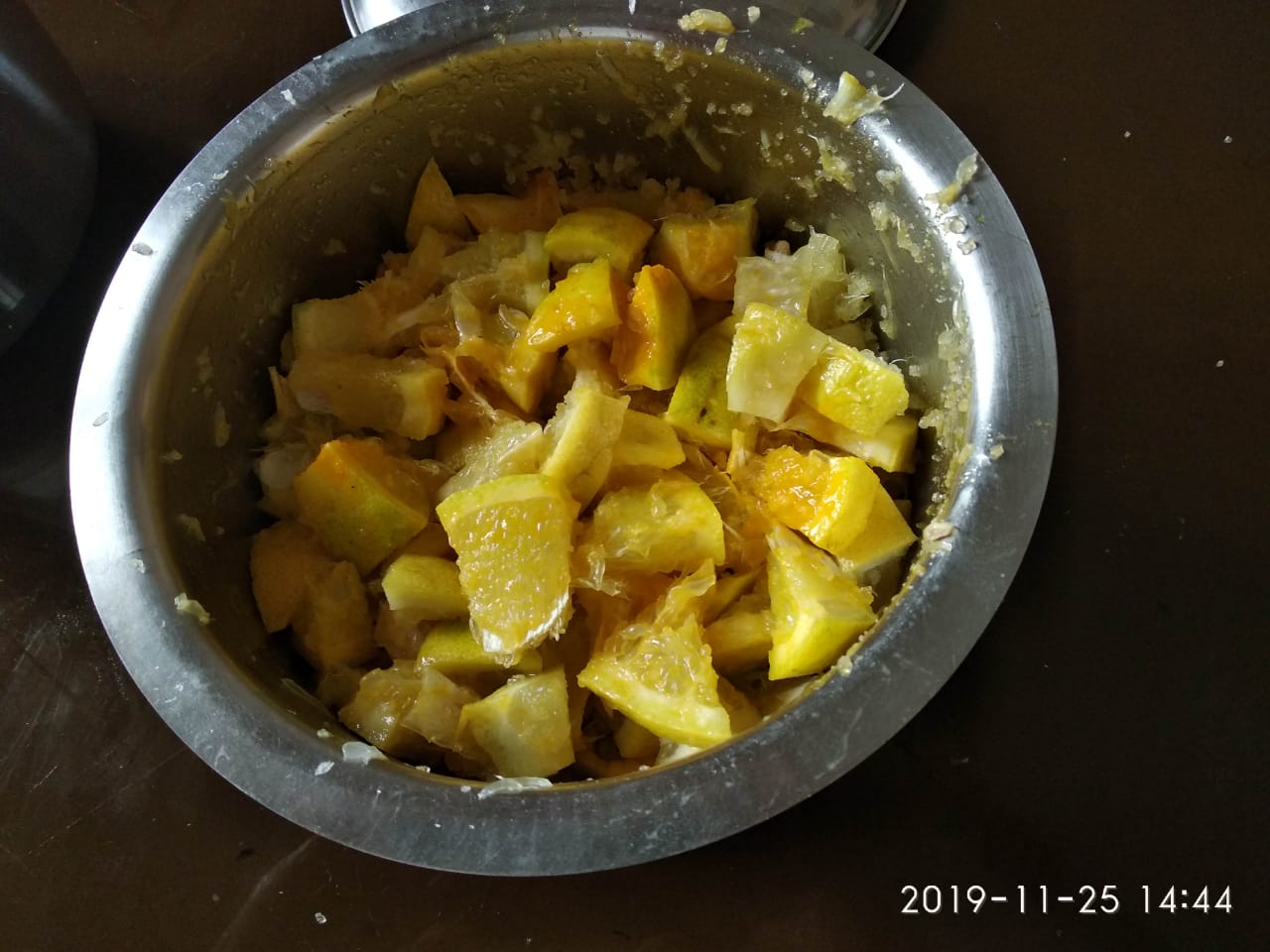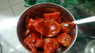But, morning and evening, mix it once with a big dry spoon. (this is to ensure that all pieces marinate evenly).