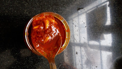 transfer the pickle into it. If required, you can adjust oil/salt/asafoetida.
