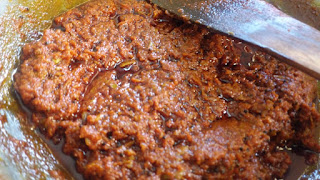 Heat oil in a thick bottom pan/kadhai, add mustard seeds. Once it crackles pour the ground mixture into it.